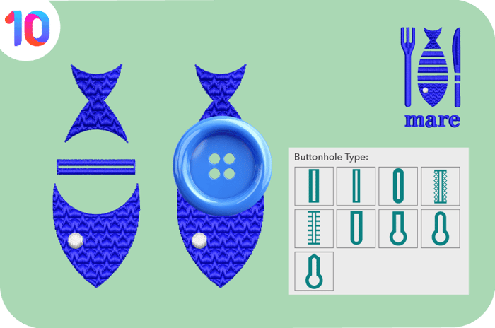 The new Add Buttonhole tool automates buttonhole creation with adjustable size and stitch parameters — ideal for fashion, apparel, and decorative embroidery applications.