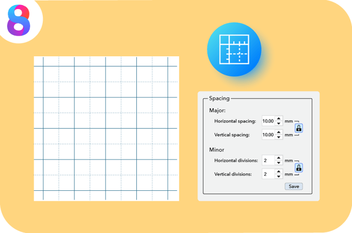 Get the precision you need. The existing 10mm grid remains, while a new minor grid lets you fine-tune every detail. Perfect for detailed design work that requires accuracy and control.
