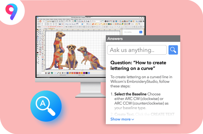 An on-demand AI assistant powered by Wilcom-trained knowledge, providing fast, factual, step-by-step guidance right where you need it, inside EmbroideryStudio.