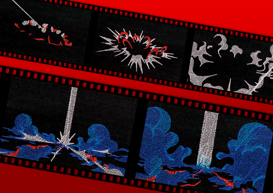 Different parts of the animation required different textures—satin stitches for crisp outlines, fill stitches for bold blocks of color, and run stitches for fine detail. Wilcom’s advanced stitch editing ensured each frame had the right balance of density, texture, and definition.