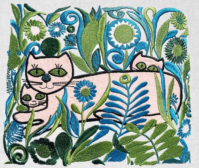 ‘Slinky Cat’ by Donald ClarkWilcom’s cutting-edge embroidery software provides the tools to translate these works from textile print into embroidery!