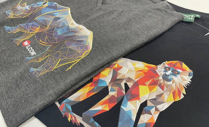 Take the Marble Grey T-shirt, for example. The stunning embroidery was created in Wilcom EmbroideryStudio by Sal Lucchese, featuring a striking Rhino design. The same artwork was then exported at 300 dpi and printed using Direct-To-Garment (DTG) technology - perfect for promotional items such as apparel or even mugs.Advantages: