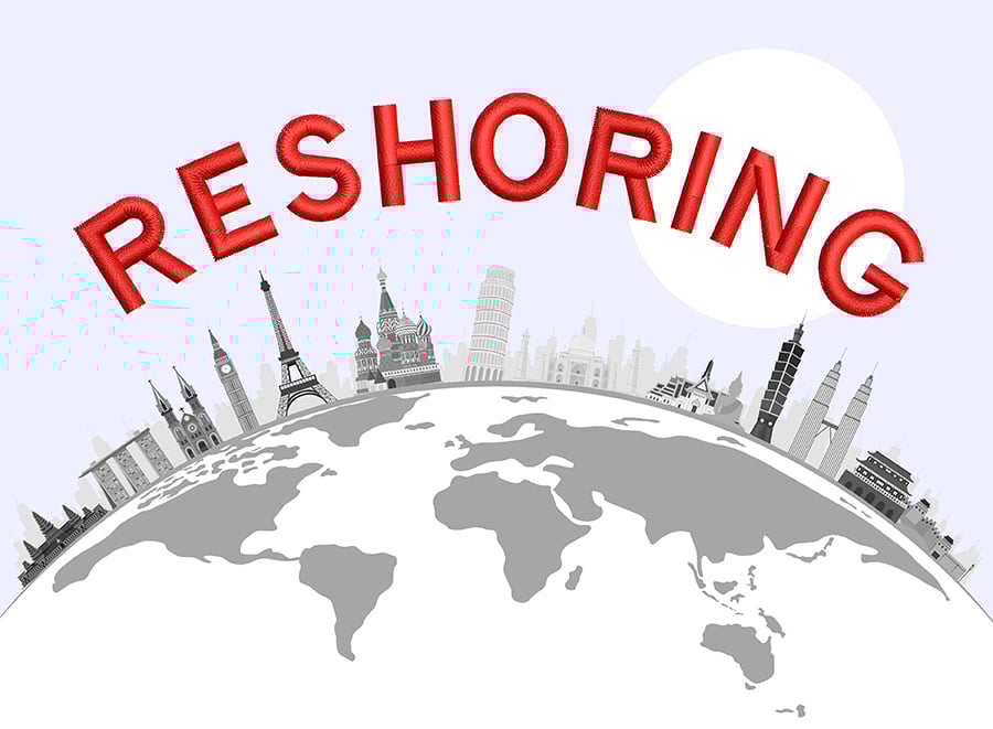 The long-standing business trend to shift production off-shore is reversing, and this includes large & small embroidery companies. Not surprisingly this reversal is being termed reshoring.