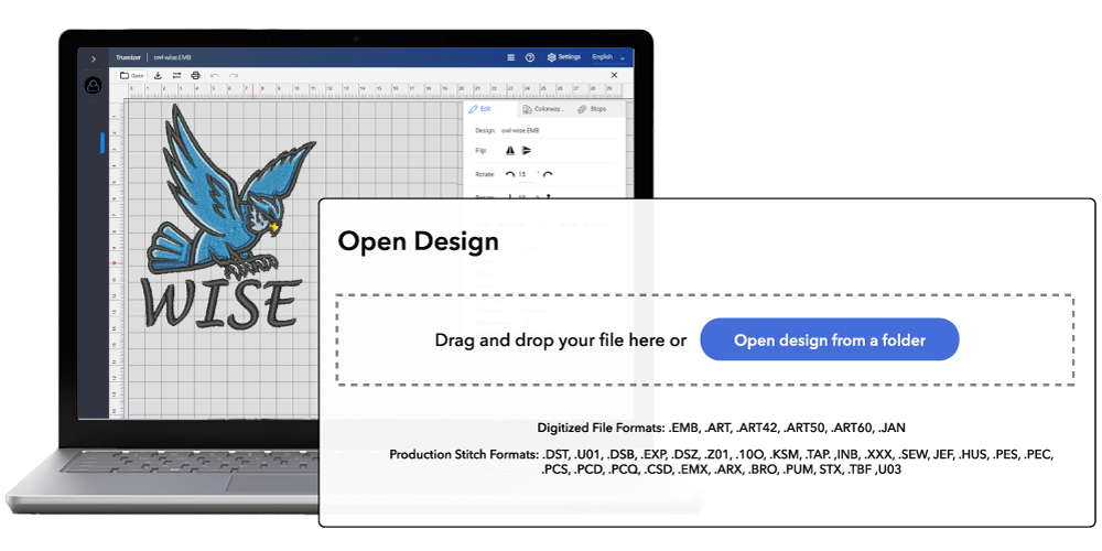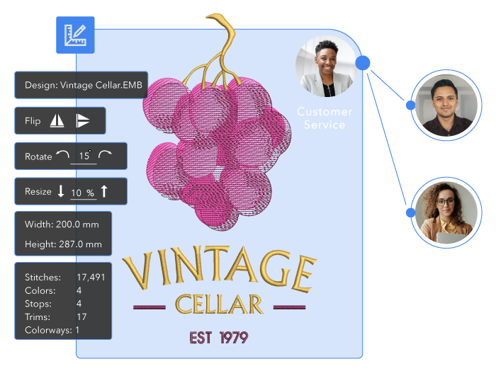 Empower embroidery and non-embroidery team members to open, view and interact with embroidery files, anywhere.